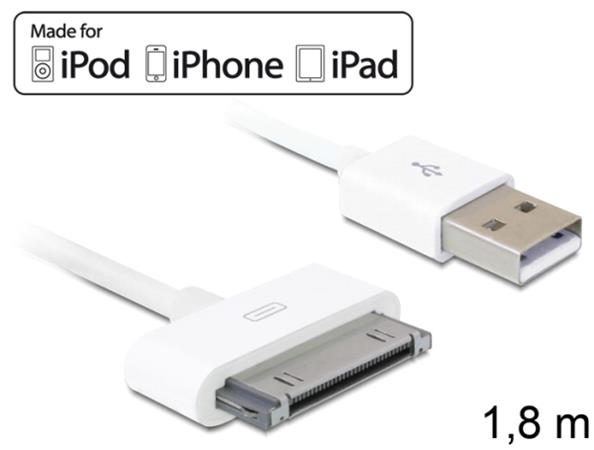 Tento datový a napájecí kabel od Delocku může být připojen ke standardnímu USB portu notebooku a PC. Díky němu můžete snadno a rychle nabíjet váš iPhone, iPad nebo iPod a také přenos dat.