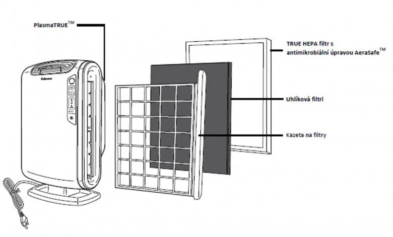 AeraMax™ DX5 má čtyřrychlostní ventilátor s velmi tichým provozem, vhodným pro 24 hod. použití. Od režimu „LOW“ pro tichý, energeticky úsporný provoz, až po režim „TURBO“ pro nejefektivnější filtraci. Režim Aera+™ – určen pro vrchol sezóny alergií. Zvýší míru výměny vzduchu o 50% ve srovnání s běžným režimem. Slouží k odstranění maximálního možného množství alergenů ze vzduchu. Senzor AeraSmart™ – čistička vzduchu je vybavena senzorem kvality vzduchu, který automaticky kontroluje kvalitu vzduchu a podle aktuální kvality vzduchu upravuje rychlost ventilátoru pro optimální filtraci. Modré, oranžové a červené světlo indikuje míru znečištění vzduchu. Snadná údržba – pro optimální výkon se vyměňují hlavní HEPA filtr ( každých cca 12 měsíců běžného provozu) + uhlíkový filtr (každé cca 3 měsíce běžného provozu). Čtyřstupňový systém filtrace vzduchu: uhlíkový filtr + True HEPA filtr + Antimikrobiální úprava AeraSafe™ + technologie PlasmaTRUE™ dx55 Uhlíkový filtr – odstraňuje pachy a zachycuje ze vzduchu velké prachové částice. True HEPA filtr – zachycuje 99,97% veškerých částic do velikosti 0,3 mikronu, včetně ambrózie a jiných alergenů, virů, bakterií, roztočů, spor plísní, zvířecích alergenů a cigaretového kouře. Antimikrobiální úprava AeraSafe™ – impregnace True HEPA filtru proti růstu bakterií, plísní a hub. Technologie PlasmaTRUE™ – v konečné fázi čištění vytváří technologie Fellowes® PlasmaTRUE™ ionizované pole, které pomáhá bezpečně odstranit zbylé znečišťující látky ze vzduchu. |