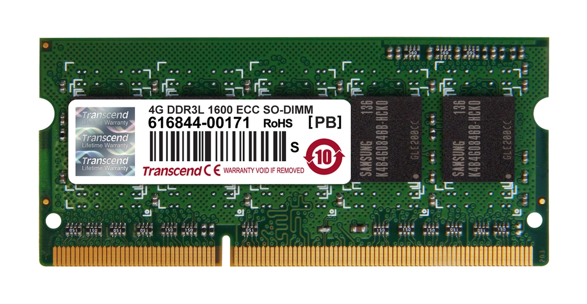Transcend's DDR3 Low Voltage ECC SO-DIMM offers unparalleled stability and synchronized performance to today's latest high-powered server class computing systems. Operating at a nominal voltage of just 1.35V presents several advantages for the system such as a lower electrical load on the memory controller and low power consumption. To help increase overall system reliability, Transcend's DDR3 Low Voltage ECC SO-DIMM features Error Correcting Code that monitors the data that gets transferred in and out of memory and corrects any errors found. DDR3-1600 ECC Unbuffer Memory CL=11 1,35 V Capacity: 4GB DRAM: 512Mx8 Part Number: TS512MSK72W6H Description: 4GB DDR3L 1600 ECC SO-DIMM 1Rx8 |