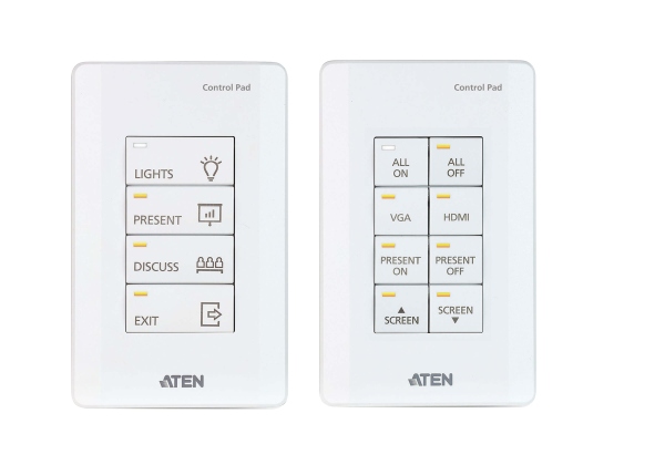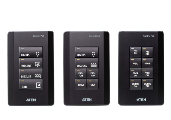 Řídicí systém ATEN je systém správy založený na Ethernetu, který propojuje všechna hardwarová zařízení nacházející se v místnosti pro centralizované řízení bez námahy. Ovládací panel VK0100 hraje nejen roli hlavního ovladače, který propojuje hardwarová zařízení, ale funguje také jako ovládací rozhraní s přizpůsobitelnými tlačítky a rozložením. Podložka Control Pad s jedním tlačítkem byla vytvořena s ohledem na flexibilitu a lze ji rozvrhnout do 14 různých kombinací 4 až 8 tlačítek, které se do sebe zaklapnou stejně snadno jako stavebnice Lego. Po připojení k místní síti uživatelé zjistí, že pomocí softwaru VK6000 lze bez námahy konfigurovat požadované ovládání jakéhokoli připojeného zařízení z podložky Control Pad. S kombinovanou podložkou Control Pad připravenou k použití získáte okamžité a inteligentní ovládání zařízení z podložky Control Pad, která dokáže spravovat jakékoli zařízení v místnosti. Poznámka: Tento model je k dispozici také v černé barvě - číslo dílu: VK01001, což je výrobek na zakázku. Pro objednání kontaktujte svého regionálního zástupce společnosti ATEN. Funkce Ovládací podložka VK0100 Podporuje různá připojení rozhraní: - 2 x porty RS-232 - 2 x reléové kanály - 1 x digitální vstupní kanál - 1 x ethernetový port Plně přizpůsobitelné díky 14 kombinacím rozložení 4 až 8 tlačítek K dispozici v černé nebo bílé barvě Podporuje nativní KNX IP pro systémy správy budov Kompatibilní s protokoly Telnet, TCP, UDP, HTTP, HTTPS, ONVIF a PJLink. Podporuje zálohování souborů projektu1 Webové grafické rozhraní pro snadnou konfiguraci systému Podporuje komunikaci SSH pro monitorování dat2 LED indikace stavu připojení a hardwaru Dvoubarevné LED diody pro jasnou indikaci v tmavém prostředí Redundantní zdroje napájení - napájení přes Ethernet a DC 5V (volitelné) Služba gravírování tlačítek na míru Konfigurační software VK6000 Jednoduché nastavení profilu s jednoduchými kroky konfigurace prostřednictvím intuitivního grafického uživatelského rozhraní Přizpůsobitelné grafické uživatelské rozhraní pro použití na mobilních zařízeních a PC3 Podpora funkce ControlAssist, která umožňuje ovládání pomocí PC4 Vestavěný generátor databází pro nastavení ovladačů zařízení a celkovou správu zařízení Vestavěná knihovna ATEN obsahující více než 10 000 ovladačů zařízení a kompletní ovladače produktů ATEN VanCryst Obousměrná komunikace umožňuje monitorování uživatelem definovaných událostí, které automaticky spouští další akce Testovací nástroj pro ověření příkazů v akci před nahráním profilu do ovládacího panelu VK0100 Pozn: 1. Každá řídicí jednotka ATEN Control Box je schopna zálohovat jeden soubor projektu. 2. Protokol SSH lze použít ke sledování přijímání/vysílání dat Control Padu. 3. Pro mobilní ovládání je nutná další licence. 4. Podrobnosti o podporovaných akcích ovládání počítače naleznete v uživatelské příručce řídicího systému ATEN. Obsah balení 1x VK0100 8tlačítkový ovládací panel 1x sada tlačítek 6x bloky svorek 1x čelní deska 1x návod k použití |