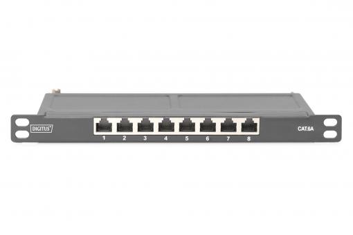 Propojovací panel DIGITUS CAT 6A, stíněný, 8portový, 0,5U, 10 ”, černý