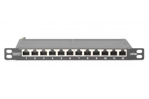 Patch panel CAT 6A, stíněný, 12portový 1 / 2U, 10 "montáž do stojanu, černá RAL 9005