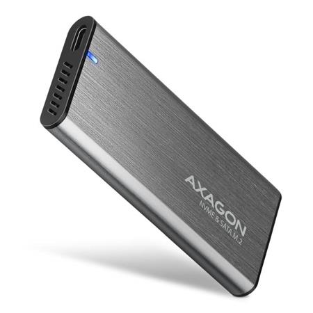 Univerzální externí AXAGON EEM2-SG2 RAW box s USB 3.2 Gen 2 rozhraním určený pro M.2 NVMe nebo SATA SSD disky. Spolehlivé připojení umožňuje oboustranný USB-C konektor na boxu. V balení naleznete nejen kabel USB-C -- USB-C pro připojení boxu k počítači, ale také USB-C -- USB-A redukci. Můžete tak box připojit k jakémukoliv volnému USB portu na notebooku.