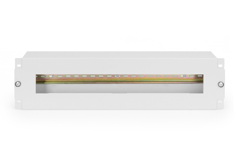 Digitus Držák na lištu DIN s krytem, 2U, 128 x 483 x 61 mm včetně lišty DIN, šedý (RAL 7035)