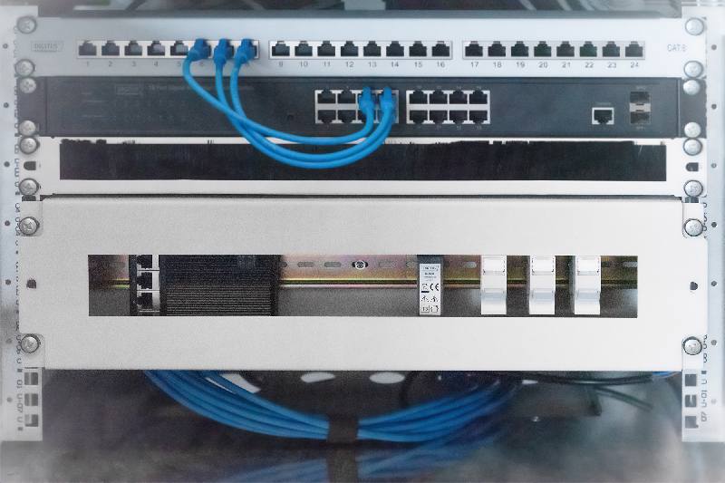 Kompaktní komponent pro skříně 482,6 mm (19") (2 rackové jednotky) s integrovanými profilovými lištami, včetně krytu.