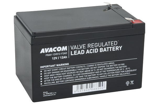 Parametry: Konektory: F2 Napětí: 12V Kapacita: 12Ah Rozměry (d x š x v): 151 x 98 x 93mm Rozměrové tolerance: 151(+1,5-1,5) x 98(+1-1) x 95(+1-1)mm Hmotnost: 3,4kg Elektrolyt: AGM Typ akumulátoru: Standard Životnost: 3-5 let (dle normy Eurobat nebo v pohotovostním režimu "Standby") VRLA - Ventilem řízený olověný akumulátor z anglického Valve Regulated Lead Acid je typ bezúdržbového akumulátoru, který lze provozovat v libovolné poloze, protože elektrolyt není v tekutém stavu. Hlavní vlastnosti akumulátoru jsou spolehlivost, dlouhá provozní životnost, otřesuvzdornost a vysoká kvalita zpracování. AGM - Akumulátor s elektrolytem nasáknutým do netkané textilie ze skelného vlákna (Absorbed Glass Mat) Standard - Nejčastěji využívaný akumulátor pro záložní zdroje UPS v pohotovostním režimu "Standby" nebo pro podobné aplikace s provozem nevyžadující speciální nároky. Nejčastější aplikace a oblasti využití: - Záložní zdroje UPS - Elektronické zabezpečovací systémy EZS - Elektrická požární signalizace EPS - Zdravotnická technika - Telekomunikační systémy a vysílače - Fotopasti - Dětská elektrická vozítka a hračky - Echoloty a sonary - Schodišťové sedačky a výtahy - Záložní zdroje pro čerpadla Nahrazuje: CJ12-12, GIV-S12-12, GIV12-12, GP12120, GP12120F2, GP12120F2, HR1251W, HR1251WF2, HR1251WF2, CT12-12, OT 12-12, FG12-60W, FG12100, FG12120, FGC21202, FW12-12U, OT12-12, HZS12-12, WP12-12, WP12-12A, WPL12-12, LT12-12, MS12-12, NP12-12, ST 12012, UHR12-12, UL12-12, UL14-12, UXL12-12, NP12-12, TP 12-12, DJW12-14, DJW12-12, B9656, OT12-12, SL12-12, LPX12-12, RT12100, RT12120, RT12120A |