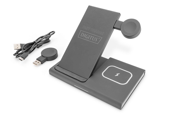 Současné nabíjení iPhonu®, iWatch®, AirPods® s funkcí MagSafe® Stanice má integrovanou nabíječku iWatch, originální nabíjecí podložka není nutná Smartphone se nabíjí horizontálně i vertikálně, což umožňuje současné nabíjení a sledování videa Indukční nabíjecí technologie pro bezdrátové nabíjení kompatibilních smartphonů Kompatibilní se všemi chytrými telefony podporujícími QI, jakož i se sluchátky AirPod®/AirPod Pro® a Galaxy Buds podporujícími QI Tuto skládací stanici lze snadno přenášet, a lze ji tak používat doma, v kanceláři nebo na cestách Napájecí adaptér není součástí dodávky, doporučujeme použít adaptér QC3.0 Podložku lze bez problémů nabíjet přes ochranné kryty o tloušťce až 5 mm. Kovové příslušenství a kreditní karty mohou proces nabíjení omezit. Pokud je kryt telefonu silnější než 6 mm, je nutné jej odstranit, jinak telefon nelze nabíjet Bezdrátová nabíjecí stanice 3 v 1 od DIGITUS® umožňuje současné nabíjení iPhonu® nebo jiného smartphonu s podporou QI, hodinek iWatch® a AirPods®, které umožňují indukční nabíjení. Nabíjení je bezdrátové pomocí indukce. Jednoduše umístěte zařízení nahoru, nabíjení se spustí automaticky. Úhel sklonu nabíjecího bodu smartphonu lze plynule nastavit. Hodinky iWatch® drží na místě pomocí magnetů a není potřeba originální nabíjecí podložka. Povrch stanice je protiskluzový, aby bylo zajištěno, že všechna zařízení zůstanou na jednom místě. Technické údaje Vstupní napětí: 5V/2,0A, 9V/2,0A, 12V/2,0A Výkon smartphonu: 5W/7,5W/10W/15W Výkon chytrých hodinek: 3W Výstupní výkon sluchátek: 5W Přepěťová ochrana / ochrana proti nadměrnému proudu / ochrana proti zkratu Pouzdro: Ohnivzdorný materiál Rozměry: d 155 x š 145 x v 15 mm Černá barva Hmotnost: 192g Styl: Nabíječka/Napájecí zdroj Obsah balení Nabíjecí stanice 1x Propojovací kabel USB-A na USB-C QIG (Příručka pro rychlou instalaci) |