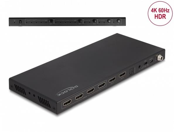 S tímto přepínačem HDMI značky Delock lze používat až čtyři zařízení HDMI společně se dvěma monitory HDMI, televizory nebo projektory. Mezi HDMI zařízeními můžete přepínat pomocí tlačítka na switchi nebo dálkovým ovladačem.