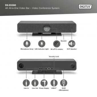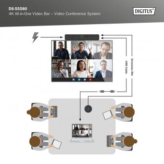 4K All-in-One Video Bar, Set ePTZ, AI, 4x mikrofon / 1x reproduktor, 1x stolní mikrofon