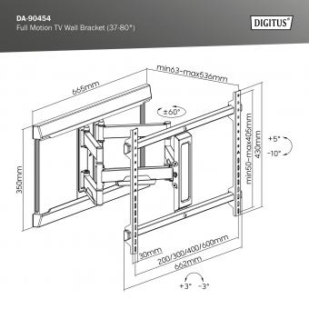 DIGITUS Plně pohyblivý TV nástěnný držák 37-80”, 60 kg zatížení max., VESA: 200x100, 200x200, 300x200, 400x200, 300x300, 400x300