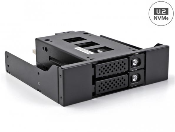 Rychlá výměna SSD Díky speciálnímu mechanismu lze SSD rychle a snadno vyměňovat. Například lze vyndat datové zálohy a uložit je na bezpečném místě. Tác se zamykáním na klíč a s pružinami Výmenný rámeček je vybaven zámkem, aby se zabránilo neoprávněnému přístupu. Kovový stabilní nosič má nahoře a vespod pružiny, které omezují vibrace. Specifikace Konektor: interní: 2 x SFF-8639 samice externí: 2 x SFF-8643 samice 1 x SATA 15 pin samec 1 x 3 pinový konektor pro ventilátoru Vhodné pro 2.5” U.2 NVMe SSD: výška HDD do 15 mm Rychlost přenosu dat až 32 Gbps Rozhraní: PCIe Rev. 3.0 Zámek s klíčem 4 x LED indikující Rozměry (DxŠxV): cca. 140 x 72 x 40 mm Rozměry 5.25” rámeček (DxŠxV): cca. 145 x 140 x 42 mm Systémové požadavky Linux Kernel 5.4 nebo vyšší Windows 8.1/8.1-64/10/10-64/11 Windows Server 2019 PC s volnou 5.25” pozicí Dva volné U.2 porty Napájecí zdroj s volným SATA napájecím konektorem Obsah balení Mobilní rámeček 2 x 2.5” výměnný šuplík 1 x 5.25” rámeček 2 x klíč Šroubky Uživatelská příručka Balení Kartonová krabice |