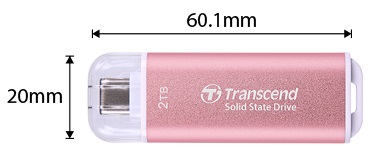 Transcend's ESD300C portable SSD features a super-fast 10Gbps transfer rate and cutting-edge SLC Cache technology, delivering blazing-fast R/W speeds of up to 1050/950 MB/s. The ESD300C is also backward compatible with USB 2.0 & 3.0 interfaces, giving you one storage solution for all of your devices. Appearance Dimensions 60.1 mm x 20 mm x 7.8 mm (2.36" x 0.79" x 0.31") Weight 9 g (0.32 oz) Color Pink Interface USB Type USB Type-C Connection Interface USB 10Gbps Storage Flash Type 3D NAND flash Capacity 512 GB Operating Environment Operating Temperature 0°C (32°F) ~ 60°C (140°F) Operating Voltage 5V±5% Note Due to the product's high-speed property, elevated temperatures during data transmission may be observed. This does not affect SSD functionality. Performance Read Speed (Max.) up to 1050 MB/s Write Speed (Max.) up to 950 MB/s Note Speed may vary due to host hardware, software, usage, and storage capacity. To reach the maximum performance, please make sure your device supports USB 10Gbps (USB 3.2 Gen 2x1). Warranty Certificate CE/UKCA/FCC/BSMI/EAC/RCM Warranty Five-year Limited Warranty Warranty Policy Please click here for more information about the Transcend Warranty Policy. System Requirement Operating System Microsoft Windows 7 or later macOS 10.10 or later |