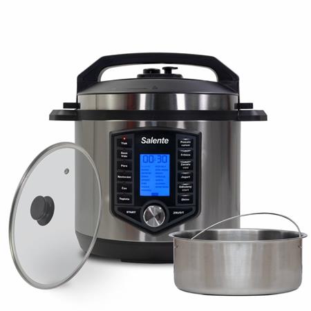 Tlakové vaření (volba teploty) Pomalé vaření (volba teploty) Sous-vide (volba teploty) Restování Zavařování 53 programů Tlačítka a menu v češtině Vnitřní hrnec 6l, teflonový povrch Příslušenství Tři režimy použití Salente Cuco II spojuje tři způsoby přípravy pokrmů v jednom moderním zařízení. Hrnec můžete použít jako tlakový, pomalý nebo pro restování. Režimy se liší podle použitých pokliček. V jednom hrnci si snadno a rychle připravíte vynikající guláš, zeleninu v páře nebo domácí poctivý vývar. Hlavní chod a příloha vařené najednou S dokoupením nerezové nádoby na přílohy a nerezového držáku uvaříte tlakovým vařením hlavní chod a přílohu odděleně v jednom hrnci! Nedělní oběd - brambory a maso s omáčkou připravíte tak, že vložíte brambory do košíku s vodou, položíte na stojánek a do spodní části vnitřního hrnce vložíte maso s omáčkou. Jídlo je za pár minut hotové. Hrnec vše ohlídá a vy máte více času na své blízké. Nádoba na přílohy ušetří za rok 1 700 Kč Vařením hlavního chodu s přílohu v tlaku v jednom hrnci, při průměrném vaření třikrát týdně a ceně elektrické energie 6 Kč/kWh ušetří za rok 1 700Kč. V tabulce je uveden příklad vaření hovězích plátků na houbách s natural červenou rýží vařených běžným způsobem na dvou plotýnkách elektrického vařiče s příkonem 1600 a 2000 W. Dále je v tabulce uveden příklad vaření téhož jídla v hrnci Salente, který ušetří při jednom vaření částku 10,8 Kč a zkrátí čas vaření o 10 minut. Další peníze ušetří hrnec Salente při fritování. Multifunkční hrnec je tepelně izolován a vyhřívá menší objem, než klasická trouba Klíčové vlastnosti multifunkčního hrnce Salente Cuco II Vaření hlavního chodu současně s přílohou Jednoduchý - snadné ovládání Rychlý - až o 70% rychlejší vaření Ekologický - ušetří až 80% energie Multifunkční Zdravý - vaření bez tuků Bezpečný - systém bezpečnostních prvků Snadné ovládání Salente Cuco II je přizpůsoben pro co nejsnadnější ovládání, proto jsou všechny ovládací prvky v českém jazyce včetně návodu. 11v1: tlakový hrnec, pomalý hrnec, rýžovar, jogurtovač, vařič vajíček, ohřívač jídla, pánev na smažení nebo restování, napařovací hrnec, sterilizátor, hrnec na zavařování, hrnec na sous-vide Vnitřní napařovací plát vyjímatelný vyrobený z kvalitní nerezové oceli 53 programů pro efektivní vaření Nádoba o objemu 6l - umožňuje vaření pro celou rodinu (2 - 6 osob), vhodná do myčky Možnost nastavení odloženého startu (až 24 hodin) a tlaku - vysoký/nízký/střední 9 ochranných prvků pro bezpečné vaření - CE certifikace, řízeno mikroprocesorem Velký a přehledný LED displej s podsvícením Ekologické vaření - ušetříte čas i peníze, o 80% nižší spotřeba elektrické energie Velmi snadná obsluha i ovládání Multifunkční Tlačítka i návod v českém jazyce Technické specifikace Rozměry: 35 × 33 × 33 (výška s tlakovou poklicí) cm Hmotnost: 3,8 kg hlavní část hrnce, 0,9kg tlaková poklice Napájení 230 V Vnitřní hrnec 6l, teflonový povrch Výkon 1200 W Barevné provedení: černo-nerezové Obsah balení Hrnec Tlaková poklice Vnitřní nádoba 6 l s teflonovým povrchem Stojan na vaření v páře Naběračka Lžíce Odměrka Kondenzační nádobka Napájecí kabel Návod |