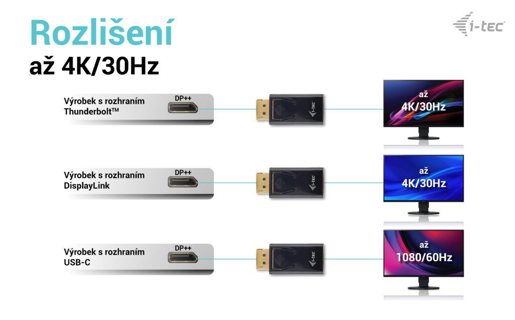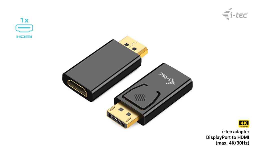 i-tec Passive DisplayPort to HDMI Adapter (max 4K/30Hz) Popis Rozšiřte svou pracovní plochu o externí monitor HDMI prostřednictvím portu DisplayPort. Tento adaptér podporuje rozlišení až 4K/30 Hz a je vhodný pro použití se všemi zařízeními vybavenými portem DisplayPort++ (POZNÁMKA: adaptér nebude fungovat, pokud bude připojen k portu, který není označen „DP++“) . Použití je velmi jednoduché: stačí připojit adaptér k portu DP počítače, připojit jej k displeji pomocí konektoru HDMI a můžete jej okamžitě začít používat. Ovladač se nainstaluje automaticky ze systému. V případě DisplayPortu s DisplayLinkem bude maximální rozlišení 4K / 30 Hz (např. dokovací stanice i-tec nebo videoadaptéry s číslem produktu začínajícím CAxxxxxxxxx). V případě připojení DisplayPort s rozhraním Thunderbolt bude maximální rozlišení 4K / 30 Hz (např. dokovací stanice i-tec nebo videoadaptéry s číslem produktu začínajícím na TBxxxxxxxxx). V případě připojení DisplayPort s USB-C bude maximální rozlišení FHD (1080p) / 60 Hz (např. dokovací stanice i-tec nebo videoadaptéry s produktovým číslem začínajícím na C31xxxxxxxxx). Specifikace 1x pasivní adaptér DisplayPort na HDMI Video port: 1x HDMI Rozlišení: 1 monitor – 1x HDMI › až 4K/30 Hz* Rozměry produktu: 51 x 23 x 10 mm Hmotnost produktu: 11 g Hardwarové požadavky: Zařízení s volným portem DisplayPort podporujícím DP++ * DisplayPort s rozhraním ThunderboltTM: adaptér umožní maximální rozlišení 4K/30 Hz DisplayPort s rozhraním DisplayLink: adaptér umožňuje maximální rozlišení 4K/30 Hz. DisplayPort s rozhraním USB-C: adaptér umožňuje maximální rozlišení FHD/60 Hz. Rozlišení a obnovovací frekvence mohou být ovlivněny také kvalitou a výkonem připojeného monitoru. |