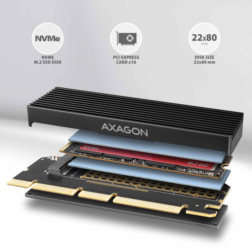 Interní adaptér AXAGON PCEM2-XS umožňuje připojení NVMe M.2 SSD disku do stolního počítače pomocí sběrnice PCI-Express. Velice kvalitní zpracování, kompaktní rozměry, atraktivní design a promyšlené chlazení dělají z adaptéru ideální volbu pro upgrade stolního počítače, který není vybaven M.2 slotem.
