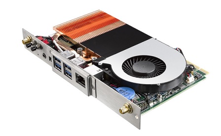 SDM Slot-in PC; Processor: Intel CoffeLake 8th Gen. Celeron G4930E 2MB Cache; 2x 2.4 GHz; Intel UHD Graphics 610; 8GB dual channel RAM; 128GB SSD; OS: W10IoT 2019 LTSC; Trusted Platform Module (TPM); Model: B; [Interfaces: 1x MiniDP++; 4 x USB3.1 Gen.2; 1x Ethernet RJ45;1 x Mini Jack Audio in/out]; Compatible with SDM standalone adapter (100016152)