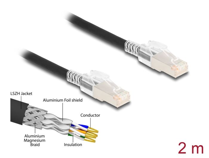 Tento kabel RJ45 značky Delock lze používat k připojování různých síťových zařízení. S bezpečnostními barevnými sponkami Tato sada obsahuje bezpečnostní barevné sponky, které lze použít k označení a zajištění kabelu. Sponku lze bezpečně připevnit ke konektoru na ochranu proti ohybu na zástrčce RJ45 na kabelu. S klíčem k zamykání Zástrčku RJ45 lze pevně zamknout k zásuvce konektoru rozhraní RJ45, např. na spojovacích krabicích nebo na patch panelech a přepínačích v rozvodných skříních za účelem ochrany kabelu proti neoprávněnému použití. Chcete-li zámek otevřít, budete k tomu potřebovat dodaný klíč. Specifikace Konektor: 1 x RJ45 samec 1 x RJ45 samec 1:1 spojení Cat.6A specifikace S bezpečnostními sponkami Stíněný (S/FTP) Průřez kabelu: 26 AWG Průměr kabelu: cca. 6 mm Materiál obalu kabelu: LSZH Barva: černá Délka: cca. 2 m Systémové požadavky Volný port RJ45 samice Obsah balení Patch kabel 1 x klíč 10 x bezpečnostních sponek Balení Plastová taška se zipem |