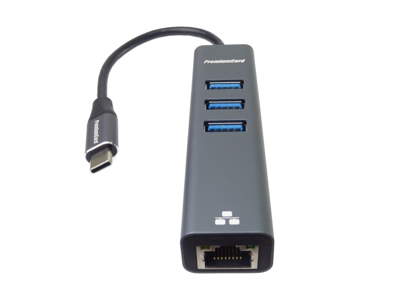 PremiumCord Adapter USB-C na Gigabit 10 / 100 / 1000Mbps + 3x USB3.0 konektor