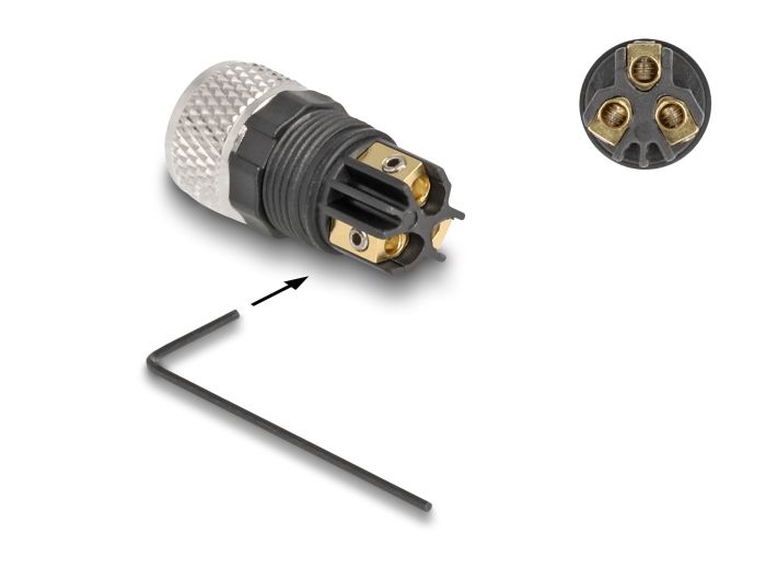 Tento konektor značky Delock lze použít k připojení kabelu šroubovým koncovým spojením s konektorem M8, např. za účelem ovládání strojů nebo automatizace.