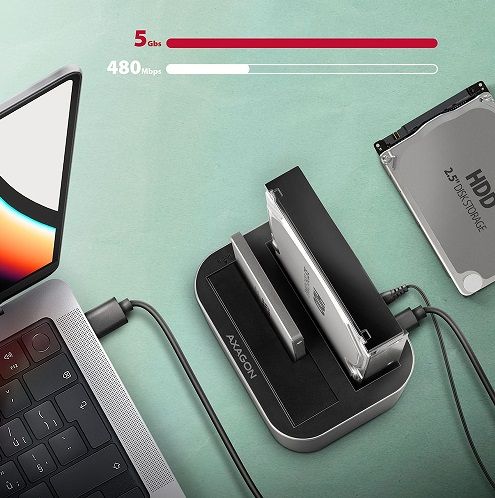 Duální USB-C 5Gbps dokovací stanice až pro dva 2.5"/3.5" SATA HDD/SSD.