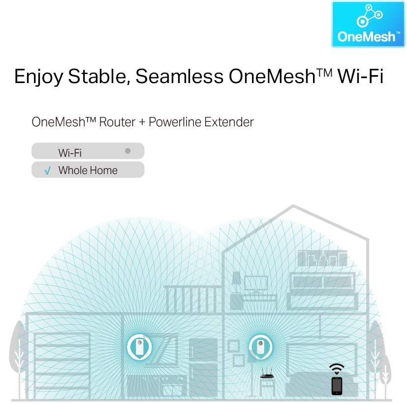 Adaptéry disponují nejnovější technologií OneMesh™ a spolupracují s existujícím routerem OneMesh™, s nímž vytváří jednotnou síť Mesh. Vaše domácí sít tak bude mít pouze jeden název. Předpokladem je, že i hlavní router musí technologii OneMesh™ podporovat.