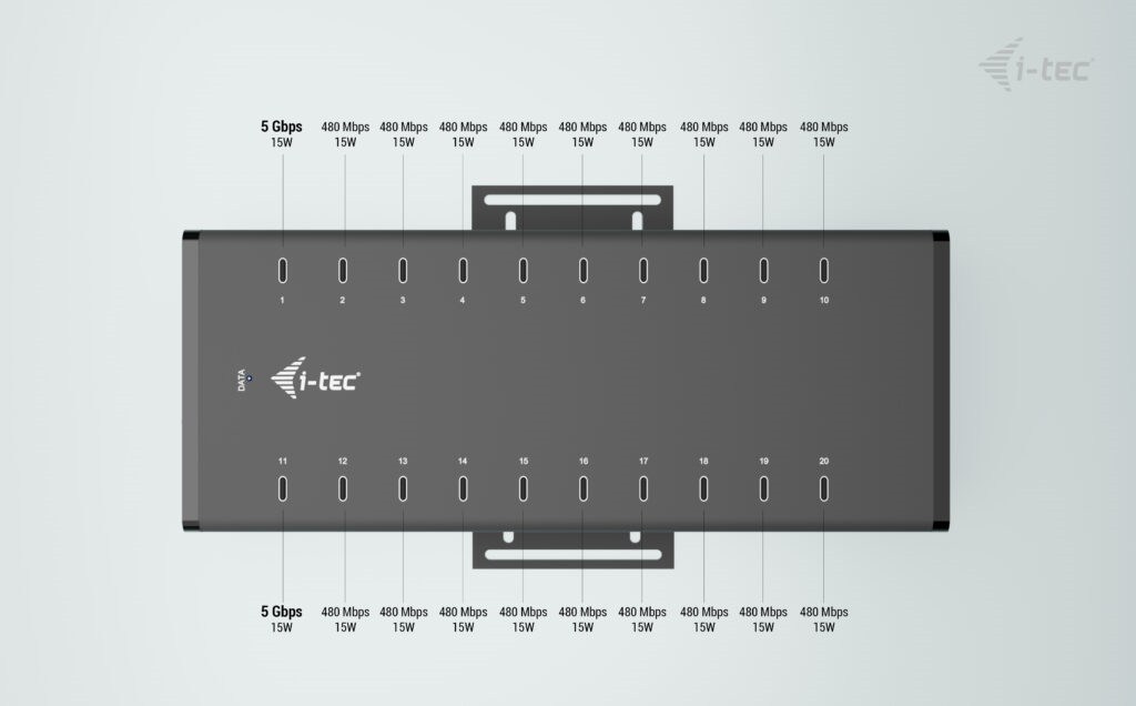 I-tec USB-C/USB-A Metal Charging+Data HUB, 15W per port, 20x USB-C, 360W