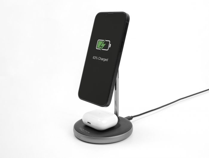 S touto nabíjecí stanicí značky Delock certifikovanou Qi lze chytrý telefon a jiné zařízení kdykoli nabíjet bezdrátově. Díky převodu energie indukcí už nejsou potřeba nabíjecí kabely a konektory jsou chráněny. Pro vhodně vybavené inteligentní telefony podporuje nabíječka rychlé nabíjení výkonem až 15 W. Nabíjecí plocha na sluchátka Nabíjecí podložka na základně stanice poskytuje výkon až 5 W a je vhodná pro zařízení podporující indukční nabíjení při nižším čtením. Například pouzdra pro bezdrátová sluchátka. Poznámka Chytrý telefon musí podporovat magnetické přidržování na nabíjecí stanici. Technické detaily Konektor: 1 x USB Type-C™ samice Vstupní napětí: 12 V Výstupní proud: až 1,66 A Nabíjecí výkon magnetického držáku chytrého telefonu: 5,0 V / 1,0 A (5,0 W), 7,5 V / 1,0 A (7,5 W), 9,0 V / 1,12 A (10,0 W), 9,0 V / 1,66 A (15,0 W) Nabíjecí výkon napájecí části stojanu: 5,0 V / 1,0 A (5,0 W) Frekvenční rozsah: 110 - 148 kHz Vysílací výkon: max. 15 W 1 x LED pro napájení Protiskluzná základna Provozní teplota: 0 °C ~ 25 °C Skladovací teplota: -20 °C ~ 70 °C Relativní vlhkost: 5 - 95 % (bez kondenzace) Přenosová vzdálenost: 4 mm s ochranným pouzdrem, 6 mm bez něj Detekce cizích těles (FOD): ano Barva: černá / šedá / bílá Váha: cca. 278 g Rozměry: stojan: průměr cca. 97 mm, výška cca. 11 mm magnetická nabíjecí podložka: průměr cca. 59 mm, výška cca. 19 mm Celková výška: cca. 153 mm Systémové požadavky Napájecí zdroj se zásuvkovým konektorem USB Type-C™ a 5 V / 2 A (pro 5 W nabíjení) nebo 9 V / 1,66 A (pro 7,5 / 10 / 15 W rychlonabíjení) Obsah balení Nabíjecí kolébka Kabel USB Type-C™ na USB Type-C™, délka ca. 1 m Uživatelská příručka Balení Kartonová krabice |
