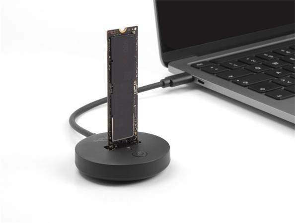 SSD M.2 se prostě zapojí do slotu a zástrčkou USB-C™ se připojí k zařízení. Proto je tato dokovací stanice nejvhodnější jako zkušební zařízení.