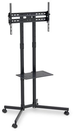 Velmi praktický pojízdný stojan je určen pro variabilní umístění TV kdekoliv v interiéru. Díky stojanu můžete přesouvat TV rychle a pohodlně kamkoliv podle potřeby. Navíc je vybaven praktickou poličkou na DVD, Set-top box atp. Robustní konstrukce z oceli unese spolehlivě až 40 kg obrazovku. Police má nosnost 10 kg. Stojan je kompatibilní s obrazovkami do úhlopříčky do 70" a pro nejvyšší možnou stabilitu je vybaven kolečky s brzdovou mechanikou proti nechtěnému pojezdu.