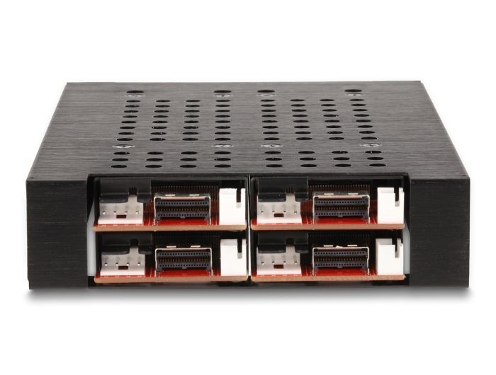 Tento pevný kovový mobilní rack značky Delock lze nainstalovat do 3.5” pozice na PC a poskytuje čtyři sloty M.2 ve formátu 2280, 2260, 2242 nebo 2230. Rychlá výměna SSD Díky speciálnímu mechanismu lze SSD rychle a snadno vyměňovat. Například lze vyndat datové zálohy a uložit je na bezpečném místě. Tác se zamykáním na klíč a s pružinami Výmenný rámeček je vybaven zámkem, aby se zabránilo neoprávněnému přístupu. Stabilní nosič z kovu má nahoře a vespod pružiny, které omezují vibrace a tím podporují jeho používání ve světě mobilních zařízení. Poznámka Je třeba obzvlášť pečlivě zajistit, aby byla disková mechanika zasunuta až na doraz, jinak nebude možné navázat spojení s SSD. Technické detaily Konektor: Mobilní rámeček: interní: 4 x M.2 klíč M slot externí: 4 x Slim SAS SFF-8654 4i samice 4 x 4 pin Floppy samec 4 x 2 pinový konektor pro ventilátoru Zásobník M.2: 1 x M.2 klíč M samec 1 x M.2 klíč M slot Kompatibilní s PCI Express V4.0 Rozhraní: PCIe / NVMe Podporuje M.2 moduly ve formátu 2280, 2260, 2242 a 2230 s klíčem M nebo klíčem B+M na základě PCIe Maximální výška komponentů na modulu: 1,5 mm je podporována aplikace oboustraných modulů 4 x LED indikující Bootovatelný, od UEFI verze 2.3.1 Kovový zásobník M.2 Podporuje NVM Express (NVMe) Podporuje S.M.A.R.T. Zámek s klíčem Rozměry (DxŠxV): cca. 159 x 100 x 25 mm Systémové požadavky Linux Kernel 6.2 nebo vyšší Windows 10/10-64/11 Windows Server 2022 PC s volnou 3.5” pozicí Jeden volný port Slim SAS SFF-8654 pro každý slot M.2 Napájecí zdroj s volným SATA napájecím konektorem Obsah balení 3.5”Mobilní rámeček s 4 x zásobník M.2 2 x kabely SATA, 15 pinové, na 2 x 4 pinové zásuvky disketové mechaniky, délka cca. 12 cm 2 x klíč 4 x šrouby I 6,0 x 5,0 mm, s hlavou 8,0 mm 4 x šrouby IM 2,0 x 4,0 mm, s hlavou 5,0 mm Uživatelská příručka Balení Box |