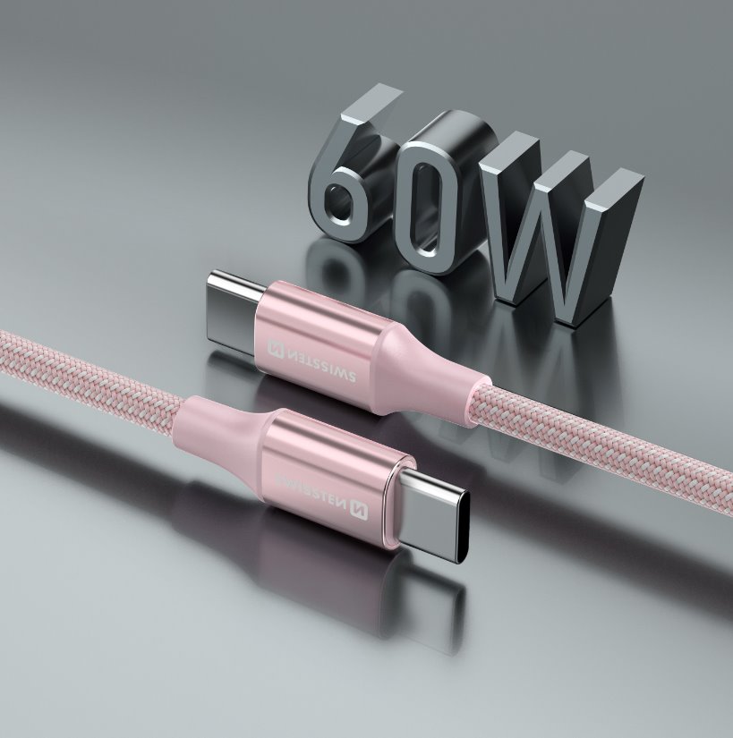 SWISSTEN DATOVÝ KABEL TEXTILE II USB-C / USB-C 1,5 M RŮŽOVÝ