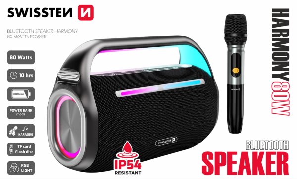 SWISSTEN BLUETOOTH REPRODUKTOR HARMONY 80W ČERNÝ