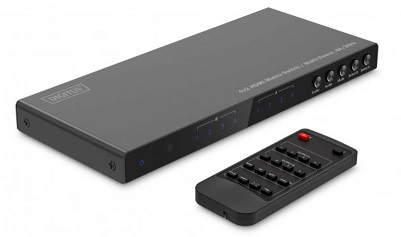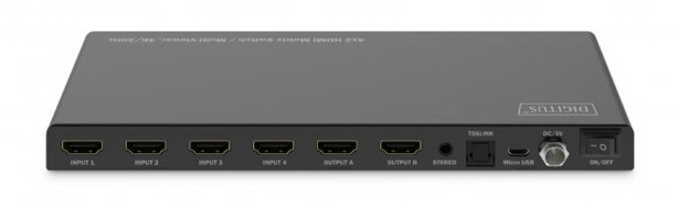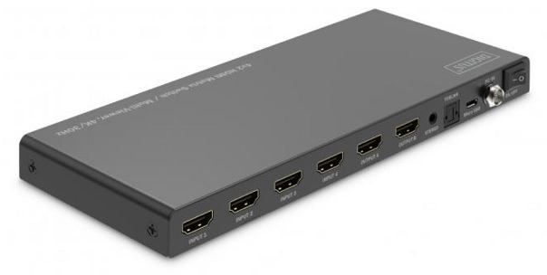 4x2 HDMI matice / více prohlížečů, 4K/30Hz SPDIF, stereo, RS232 Pohodlně přepínejte mezi až 4 zdroji HDMI a 2 přehrávacími zařízeními a distribuujte svůj mediální obsah nezávisle / Multi-viewer nabízí 6 režimů pro individuální zobrazení zdrojů (rozdělená obrazovka, PIP) Přepínejte až mezi 4 HDMI zdroji a 2 přehrávacími zařízeními pomocí dálkového ovladače, přímo na zařízení nebo přes RS232 ovladač Multi-viewer: 6 režimů pro individuální zobrazení zdrojů na HDMI výstupu A (primární) nebo na HDMI výstupu A a B současně (sekundární) pomocí dálkového ovladače nebo na samotném zařízení Audio extraktor: Toslink / Stereo (3,5 mm) - Oddělení / oddělená reprodukce audio signálu Max. rozlišení: 4K/30 Hz Ovládání RS232 přes micro USB Scaler (přepínač) - Nastavení rozlišení HDMI výstupu (1080p, 1600p, 4K/30Hz) Samostatný vypínač Šířka pásma videa: 10,2 Gbps HDCP 1.4 Rozhraní HDMI 1.4 Popis Maticový přepínač HDMI DIGITUS® 4x2 / Quad Multi-Viewer vám umožní pohodlně přepínat mezi až 4 zdroji HDMI a 2 přehrávacími zařízeními a nezávisle distribuovat váš mediální obsah. Přepínejte pohodlně mezi zdroji signálu pomocí dálkového ovladače, přímo na zařízení nebo pomocí ovládání RS232. Funkce multi-viewer nabízí 6 režimů pro individuální zobrazení zdrojů (split-screen, PIP) na výstupu A nebo paralelně na A & B. Audio signály lze také oddělit a odděleně reprodukovat přes Toslink nebo 3,5 mm stereo připojení. Podporuje rozlišení až 4K/30Hz. Rozlišení výstupu HDMI lze individuálně upravit pomocí scaleru. Technické detaily Přepínejte až mezi 4 HDMI zdroji a 2 přehrávacími zařízeními pomocí dálkového ovladače, přímo na zařízení nebo přes RS232 ovladač Multi-viewer: 6 režimů pro individuální zobrazení zdrojů na HDMI výstupu A (primární) nebo na HDMI výstupu A a B současně (sekundární) pomocí dálkového ovladače nebo na samotném zařízení Audio extraktor: Toslink / Stereo (3,5 mm) - Oddělení / oddělená reprodukce audio signálu Max. rozlišení: 4K/30 Hz Ovládání RS232 přes micro USB Scaler (přepínač) - Nastavení rozlišení HDMI výstupu (1080p, 1600p, 4K/30Hz) Samostatný vypínač Šířka pásma videa: 10,2 Gbps HDCP 1.4 Rozhraní HDMI 1.4 Konexe: 4x HDMI vstup (4K/30Hz) 2x HDMI výstup (4K/30Hz) 1x Toslink 1x 3,5 mm audio 1x Micro USB vstup - RS232 ovládání / servis, aktualizace vzdálené údržby 1x DC jack se šroubovacím konektorem 5V/1A (napájení) - Připojení napájecího adaptéru 9x stavové LED diody 1 x IR přijímač 5x přepínací spínač 1x vypínač Provozní teplota: 0-70° Spotřeba energie: cca. 5W Pouzdro: kov Rozměry (pouzdro): D 21,4 x Š 9,1 x V 1,85 cm Hmotnost: 450 g Barva: černá HDTV rozlišení max.: 3840 x 2160 pixelů, 30Hz HDTV standard: Ultra HD 4K Počet vstupních portů: 4 Počet výstupních portů: 2 Vstup signálu: HDMI Výstup signálu: HDMI Porty pro připojení videa: HDMI | Zobrazit galerii (4) Neručíme za správnost informací, poskytovaných třetí stranou. |
