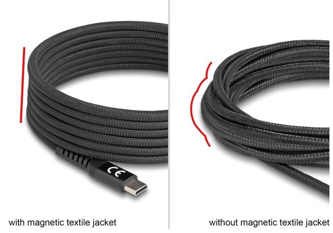 Tento USB kabel od Delocku umožňuje připojení mezi zařízením s USB Type-C™ konektorem a PC nebo notebooku vybaven volným USB Type-C™ portem. Vzhledem k podpoře normy USB Power Delivery lze připojená zřízení napájet výkonem až 60 W (20 V / 3 A). Magnetická funkce Díky integrovaným magnetům v opláštění kabelu se kabel nezašmodrchává. Kabel se automaticky vrací do své svinuté polohy a vždy působí spořádaným dojmem. Technické detaily Konektor: 1 x USB 2.0 Type-C™ samec 1 x USB 2.0 Type-C™ samec Průřez kabelu: 30 AWG datové vodiče 22 AWG napájecí vodiče Podpora napájení USB Power Delivery (USB PD 3.0) s výkonem až 60 W (20 V / 3 A) Průměr kabelu: cca. 4,5 mm Rychlost přenosu dat 480 Mbps Kabel s magnetickým textilním stíněním Konektor v kovovém pouzdru Barva: černá Délka: cca. 2 m Obsah balení USB 2.0 kabel Balení Plastová taška se zipem |