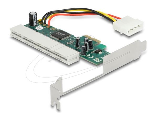 PCI Express riser card od Delocku umožňuje připojení jedné PCI karty přes jedno rozhraní PCI Express. Zahloubení ve slotové konzoli umožňuje externí připojení, například kabelů k integrované kartě PCI ve skříni počítače.