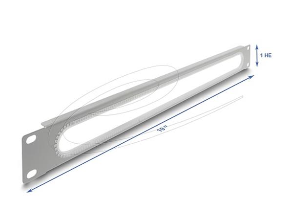 S ochranou hran Integrované profily ochrany hran brání oděru kabelů a vodičů, ke kterému by mohlo docházet na ostrých hranách krytu. Optimální vedení kabelů Zajistí spořádaný a prostorově úporný způsob vedení a uspořádání většího počtu kabelů. Technické detaily K montáži do síťové skříně rozměru 19”, 1U Přední strana s otvorem (440 x 25 mm) S ochranou hran Materiál: ocelový plech Barva: šedá RAL7035 Rozměry (DxŠxV): cca. 482,6 x 44,4 x 25,0 mm |